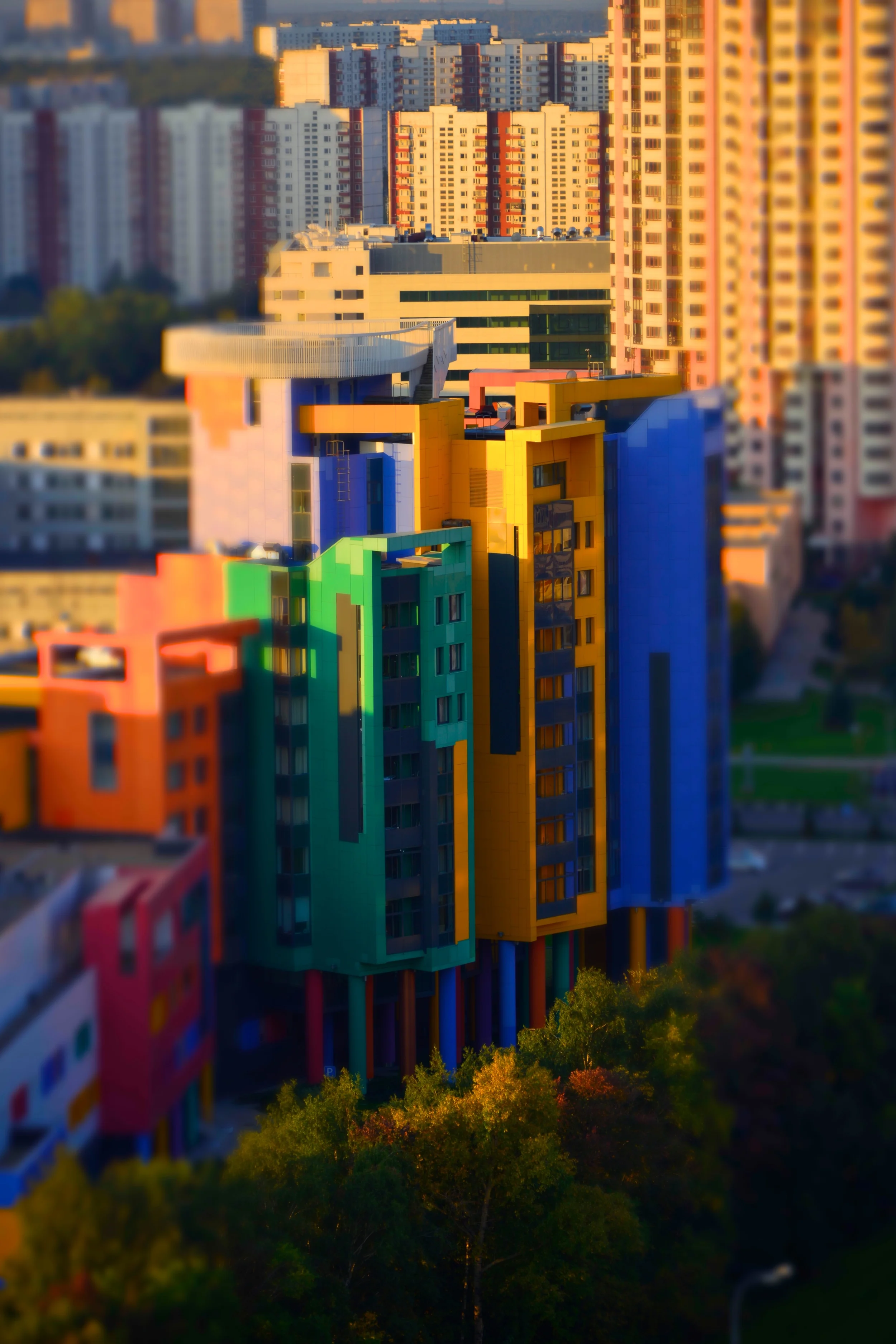 In the absence of any exciting landscapes or architecture to shoot, I decided to be a bit more creative. I was up on the 23rd floor of the Astrus Hotel, so I got a good view down Leninsky Prospekt. I took a few ‘miniatures’ of the tower blocks first…